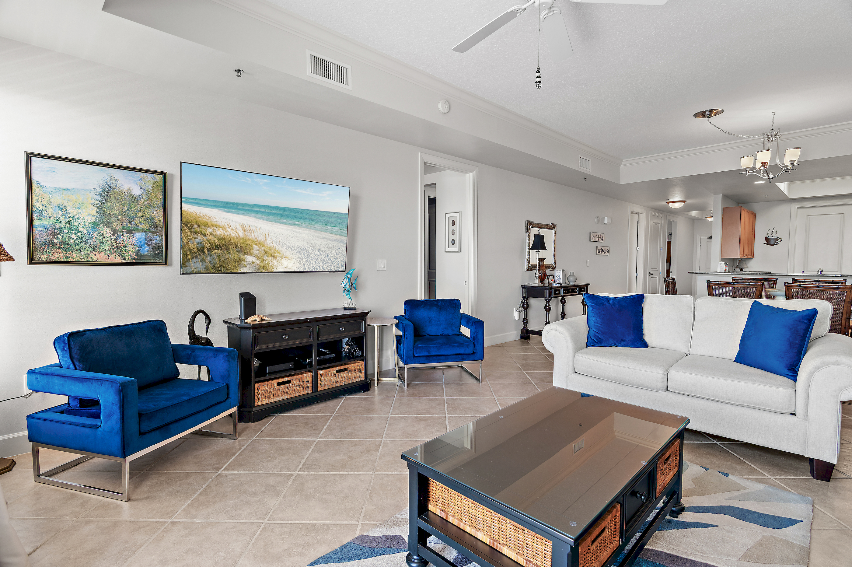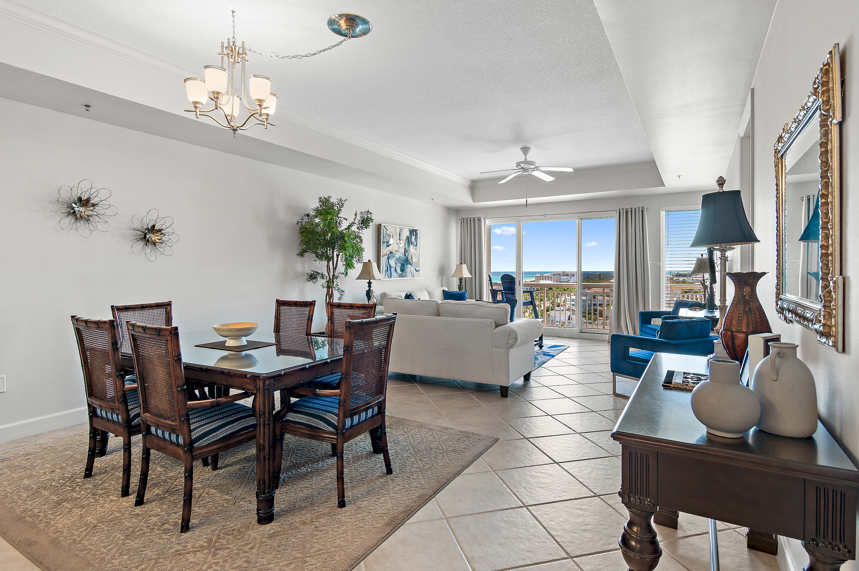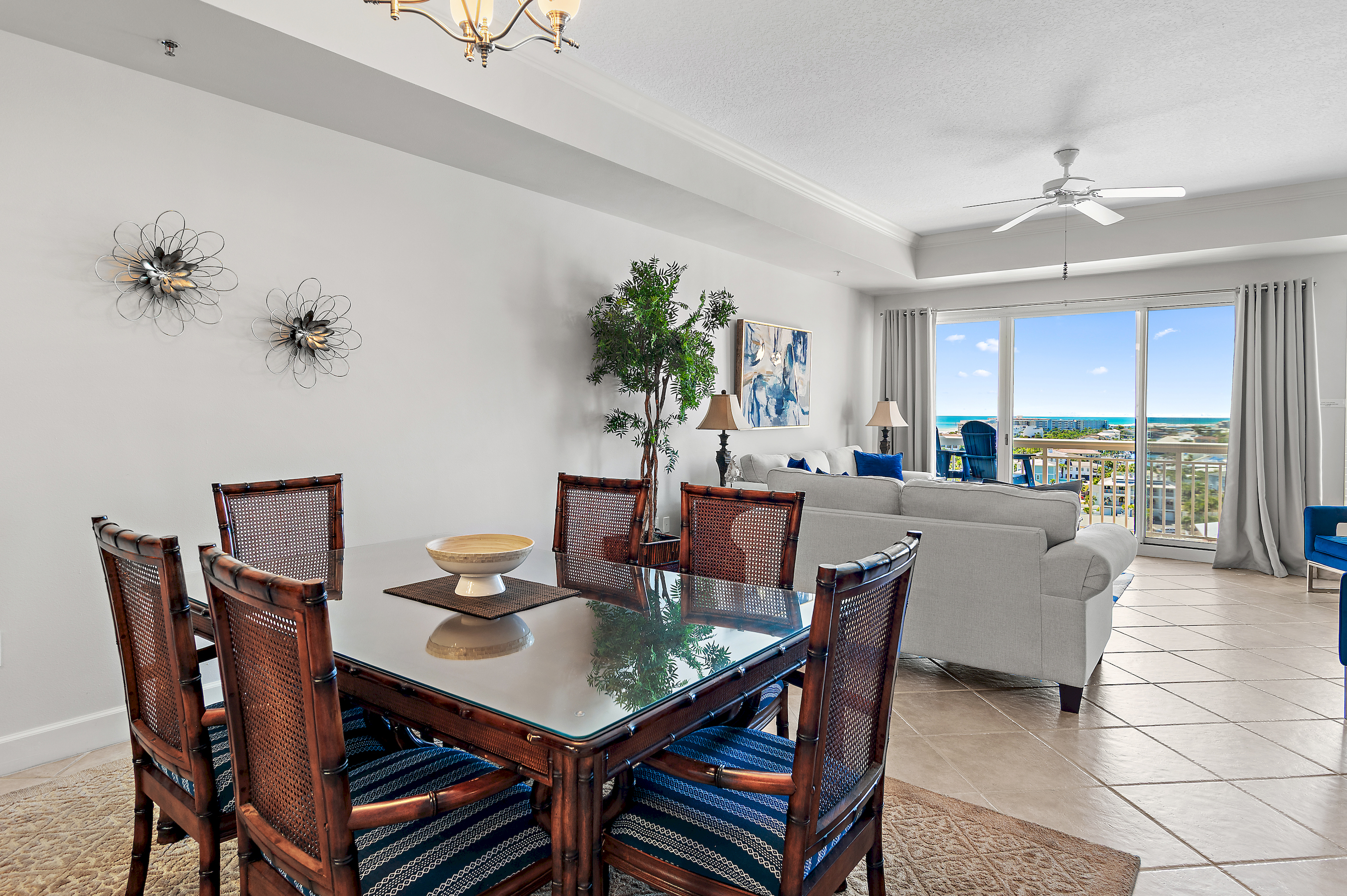 Step into Harbor Landing 802B and immediately feel the difference. This beautifully appointed condo offers an expansive open living space, far exceeding the typical Destin condo layout. The living area flows seamlessly onto a large private balcony, where you'll enjoy sweeping ocean views and unforgettable sunset skies—the kind that make you pause mid-conversation.