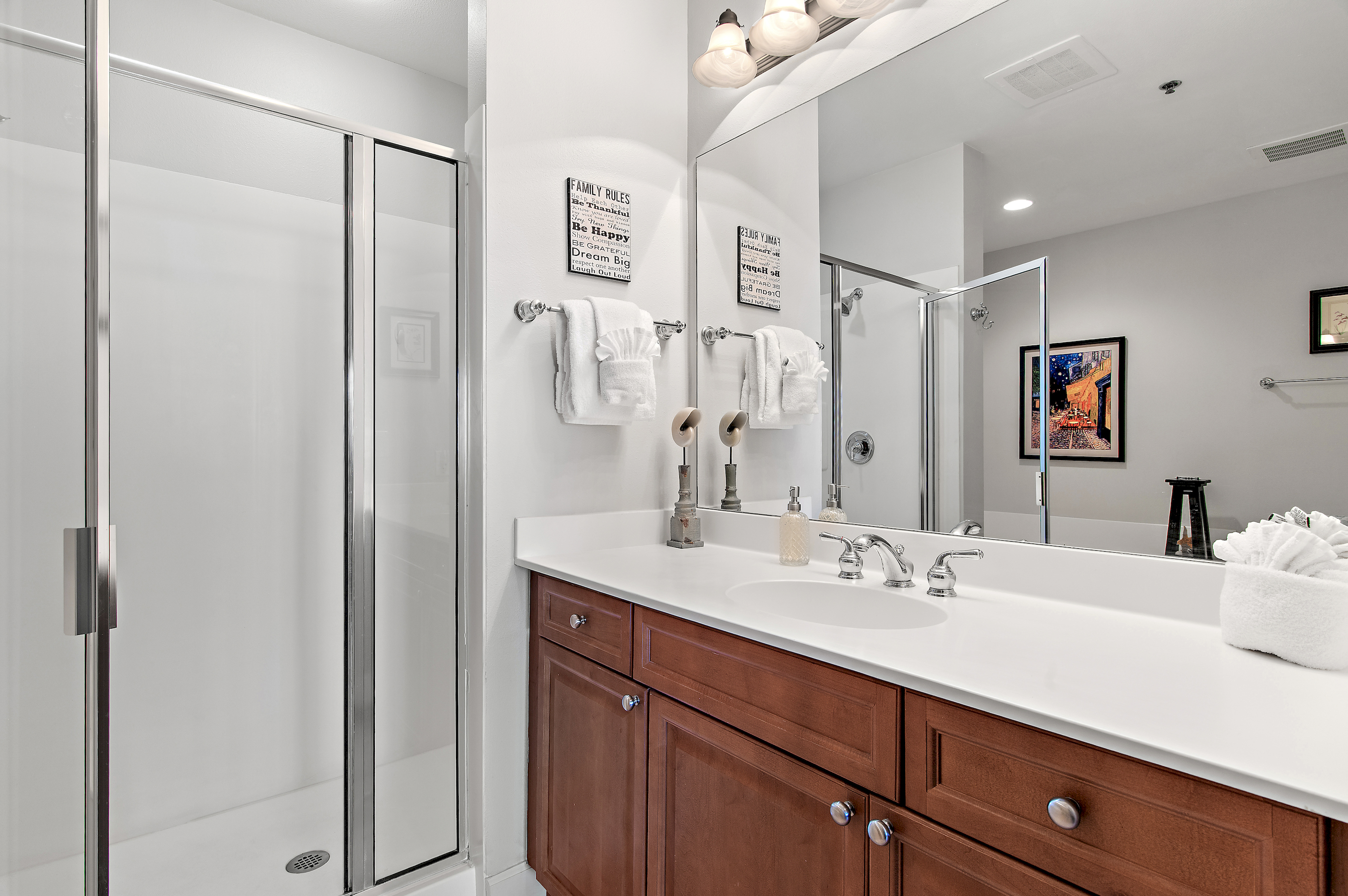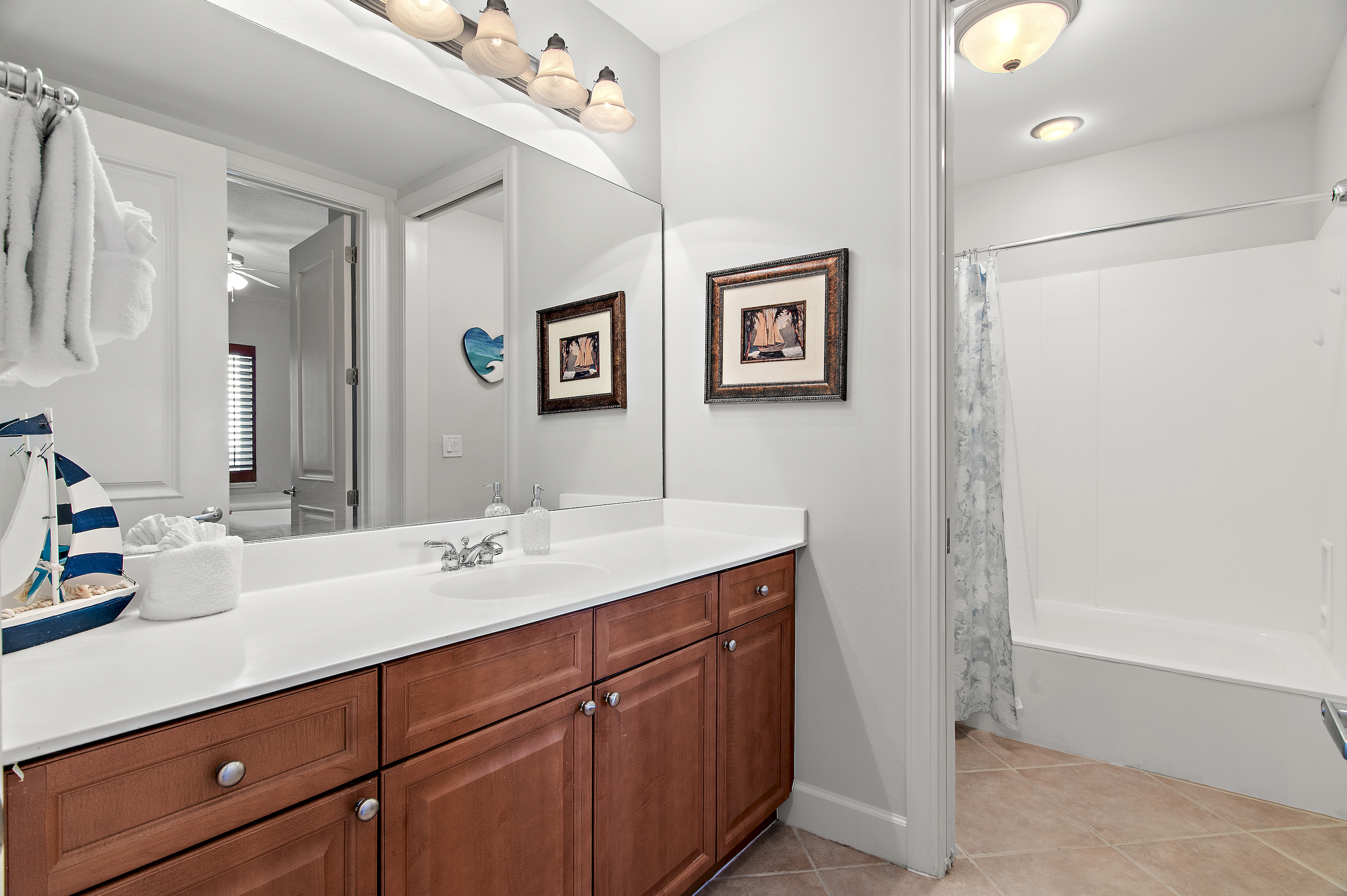 Guest Bathroom: Conveniently located nearby with a shower/tub combination.