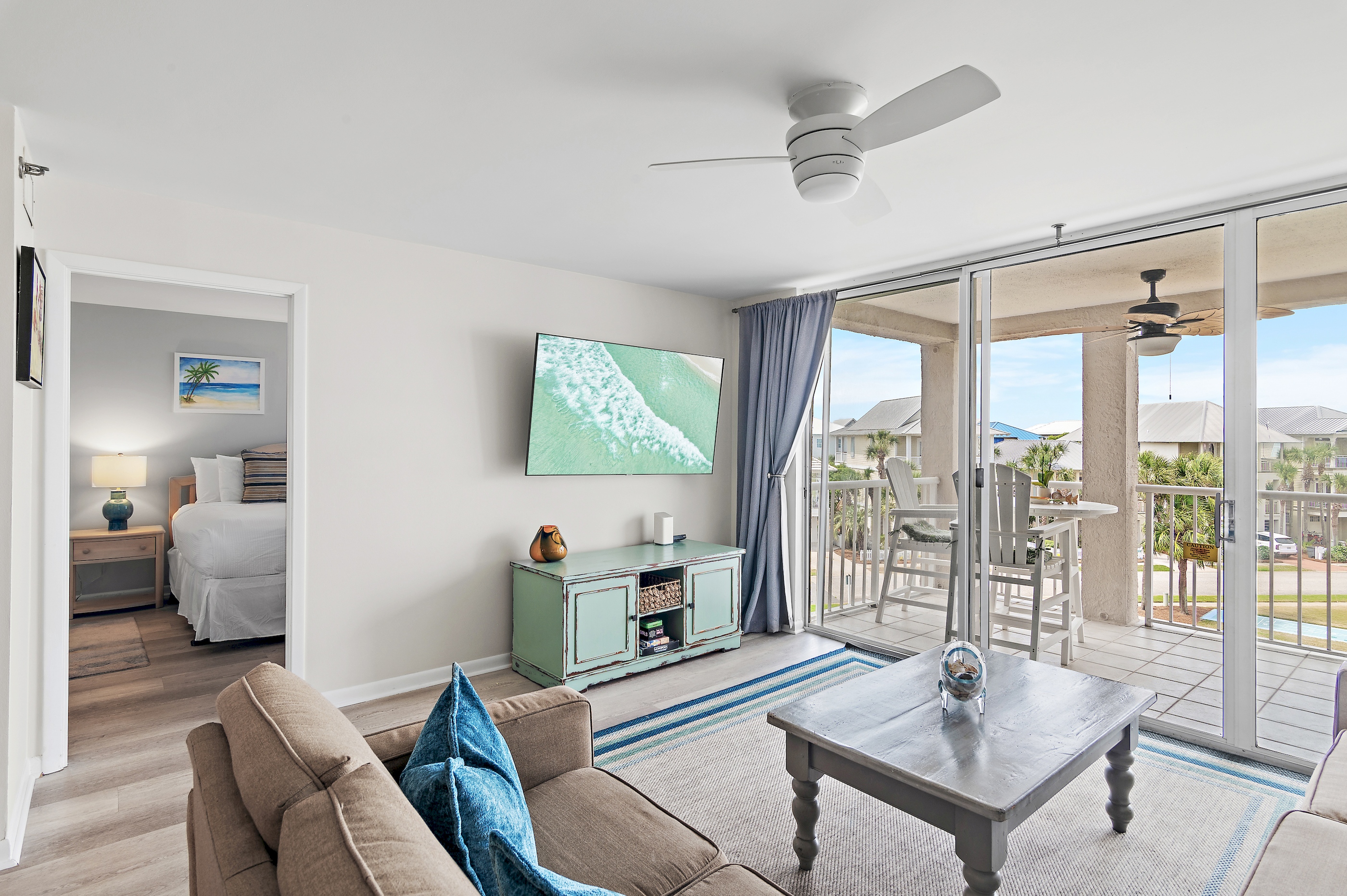 The condo features a private balcony that provides stunning Gulf views and is perfect for enjoying your morning coffee or a sunset cocktail.