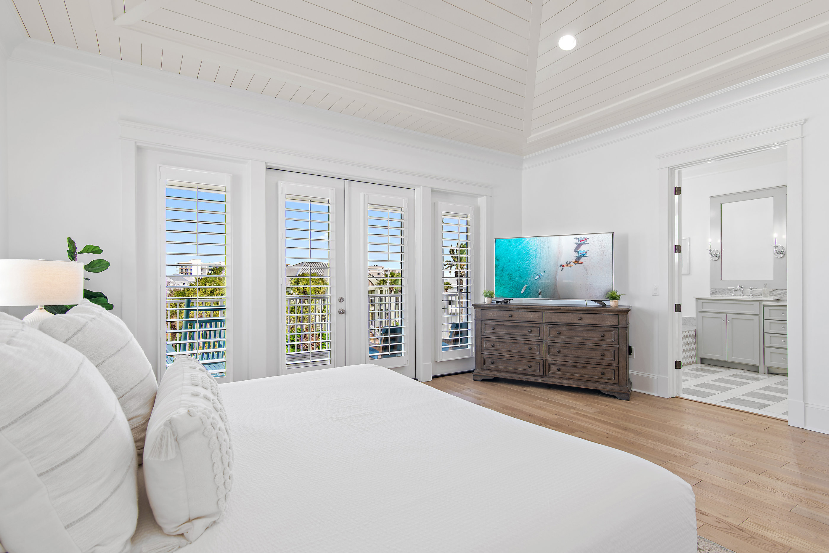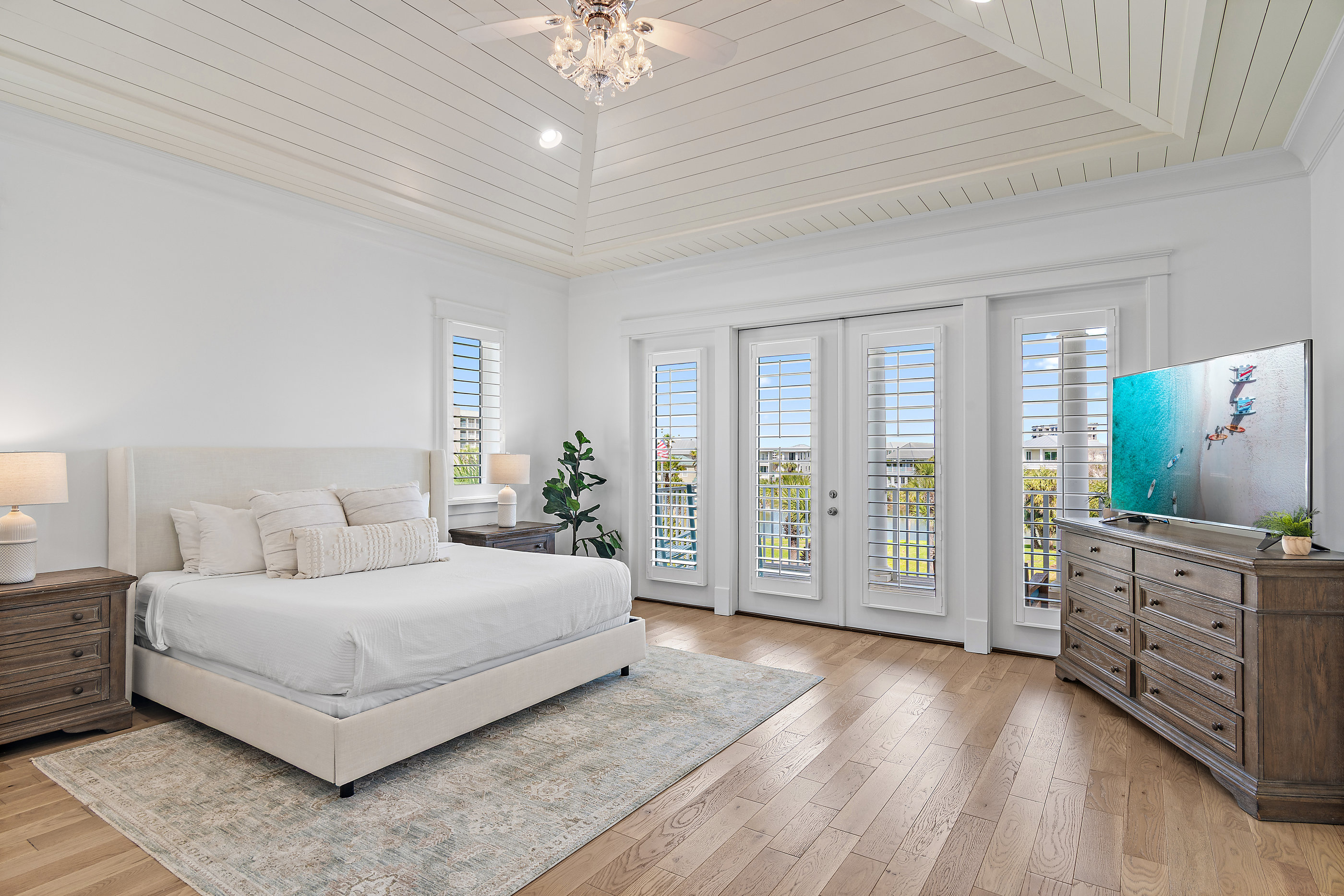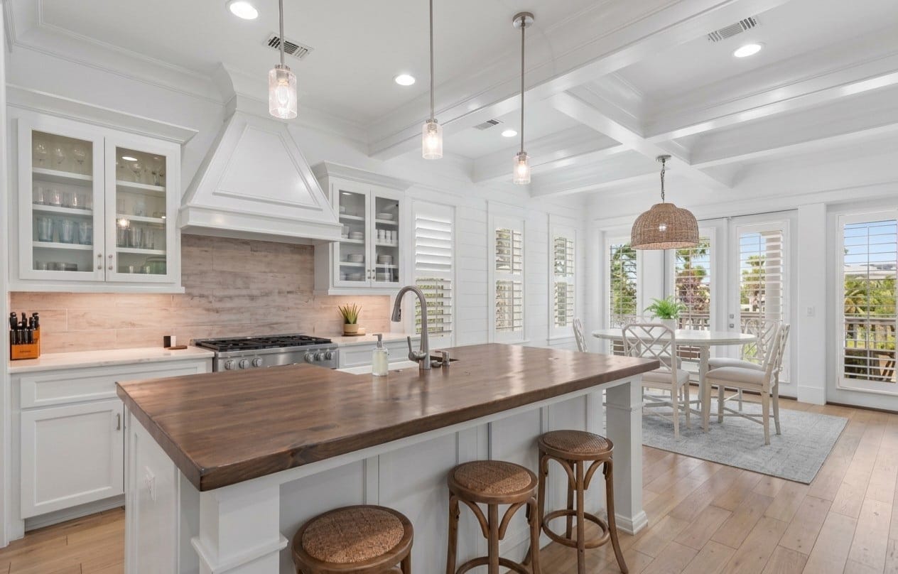 Welcome to White Sand Escape is a stunning 4-bedroom, 3.5 bathroom luxury home nestled within the private, gated community of Destin Pointe on Holiday Isle. This three-story residence combines elegance and comfort, featuring coffered ceilings, marble surfaces, a gourmet kitchen, high-end furnishings, and a private elevator providing easy access to every level.